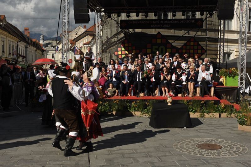 Predsednik Republike Slovenije Borut Pahor se je danes v središču Kamnika udeležil jubilejne povorke narodnih noš »50 podob slovenske oblačilne dediščine«, ki je potekala ob 50-letnici festivala Dnevi narodnih noš in oblačilne dediščine, največjega etnološkega festivala na Slovenskem, ki ga je britanski časnik The Guardian uvrstil med 20 najboljših tradicionalnih festivalov v Evropi.Predsednik republike je bil častni pokrovitelj jubilejnega 50. festivala narodnih noš in oblačilne dediščine in je bil slavnostni govornik na povorki, ki predstavlja vrhunec festivala.Ob tej priložnosti je predsednik Pahor vročil posebno priznanje, Zahvalo predsednika Republike Slovenije, ki so jo ob jubilejni 50. izvedbi prejeli Dnevi narodnih noš in oblačilne dediščine, največji etnološki festival na Slovenskem, za več kot pol stoletja ohranjanja raznolikosti slovenske oblačilne in kulturne dediščine.Zahvalo sta sprejela župan Občine Kamnik Matej Slapar in vršilec dolžnosti direktorja Zavoda za turizem, šport in kulturo Kamnik, Luka Svetec.