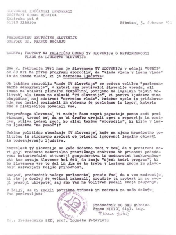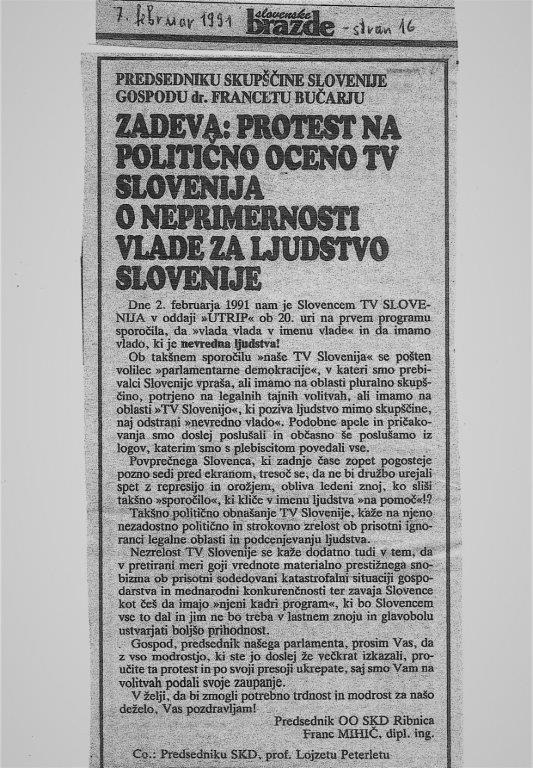 Kakorkoli že, ob izpadu v oddaji Utrip se je kritično oglasil tedanji predsednik občinskega odbora SKD Ribnica Franc Mihič in protestiral zaradi takšnega ravnanja nacionalne televizije. Več pa seveda v priloženih dokumentih zgoraj.