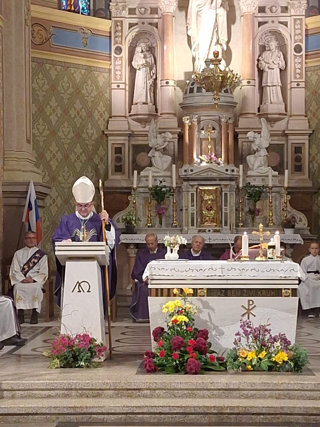 Taborišče Teharje  za vrnjene domobrance in civilne begunce na Teharjah je s svojimi grozotami eden od simbolov slovenske Golgote v letu 1945. Tukaj so bili na način nečloveškega ravnanja s sobrati, kristjani in Slovenci, pa tudi tisti iz naše bližnje soseščine, pomorjeni, ker niso želeli biti enaki s tistimi, ki se niso ravnali po narodovem interesu temveč po neki ideologiji, k je bila vsiljena od drugod.