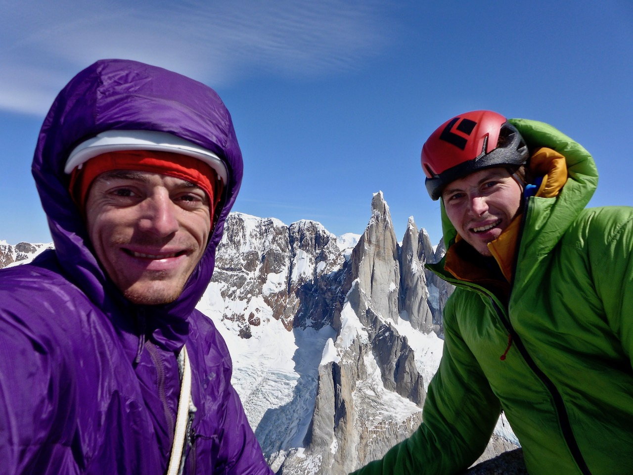 David Debeljak (AO PD Rašica) in Gašper Pintar (AO PD Ljubljana Matica) sta (plezalno) leto prav tako začela v Patagoniji, kjer sta dobro izkoristila vremensko okno in v začetku februarja opravila ponovitev smeri Titanic (A0, 7a, M5, WI4, 950 m) na markantni stolp Torre Egger. “Epsko huda smer na verjetno najbolj ikoničen vrh daleč naokoli, vsekakor prava izbira glede na vreme in pogoje za plezanje. Mešanica strme, spodobno težke skale in lednih raztežajev, pa nekaj ledu v pokah in snežne gobe na vrhu,” je vtise strnil Debeljak, Pintar pa je v začetku januarja v navezi s Francozoma Damienom in Benoitom preplezal tudi smer Supercanaleta v Fitz Royu (TD+ VI/5, 1500 m).