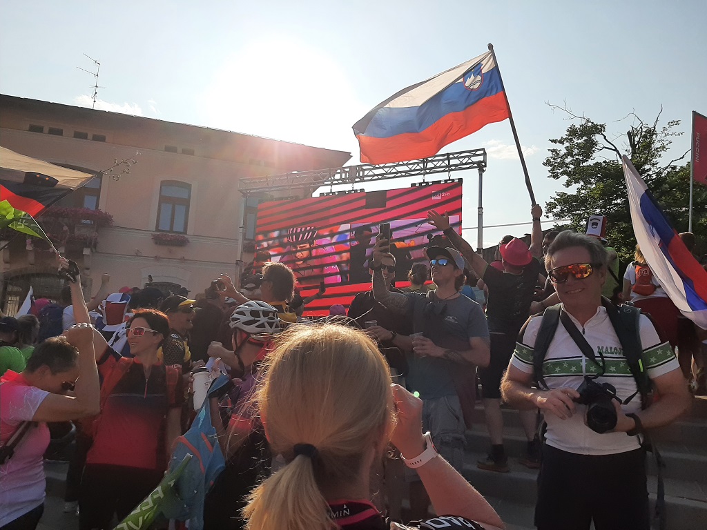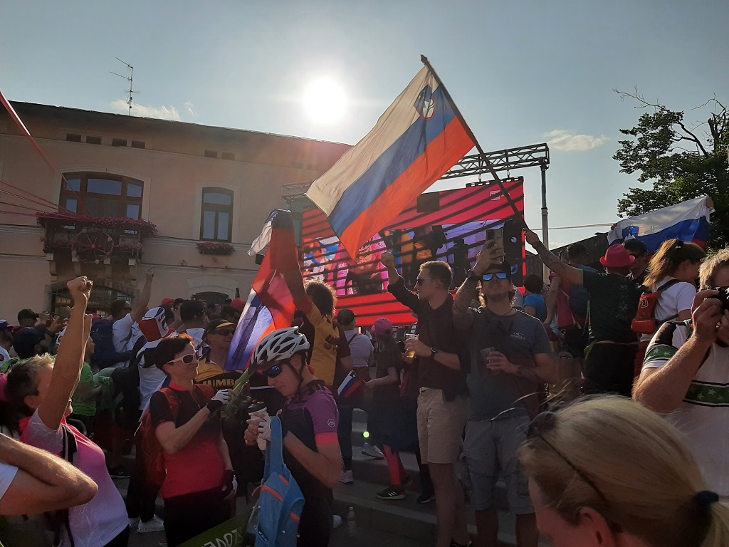 Če je bila na vrhu prava slovenska veselica, je bilo v Trbižu vse skupaj nekoliko bolj mešano. Že zgodaj so se sicer slišali vzkliki, “Rogla, Rogla …”, skandiranje in navijanje pa se je ves čas stopnjevalo. Tudi še več ur pred Rogličevim startom.