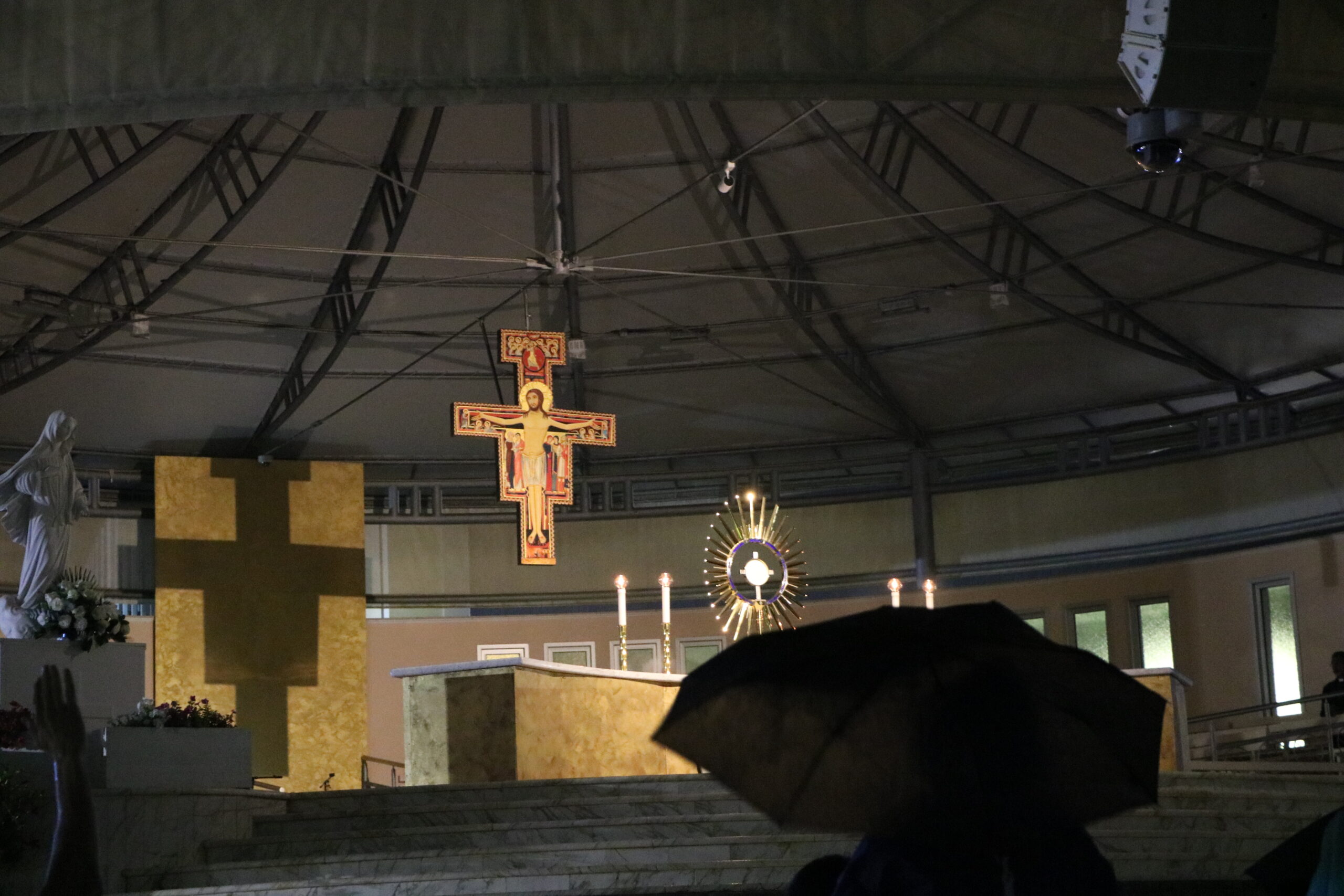 Popoldne je pozno kosilo in nato znova večerni program. Le da tokrat po maši sledi najprej polurna molitev za duhovno in telesno zdravje ter nato še en del rožnega venca. Ob devetih zvečer pa je bilo napovedano čaščenje, kar je zanimivo, saj je epidemija covida-19 za nekaj časa prekinila to prakso in je bilo čaščenje tudi ob sobotah zvečer, v zadnjem času takoj po maši. Čez dan smo imeli kar srečo z vremenom, in to vse do 21. ure. Prav ob začetku evharističnega čaščenja pa se je nad nami razdivjala nevihta z močnim dežjem in treskanjem, zaradi česar nas je pred zunanjim oltarjem ostalo bolj malo. Kot bi pekel pobesnel. A smo vztrajali, čeprav premočeni. Pomembno je vztrajati tudi v neugodnih razmerah, ko je veliko nasprotovanja.