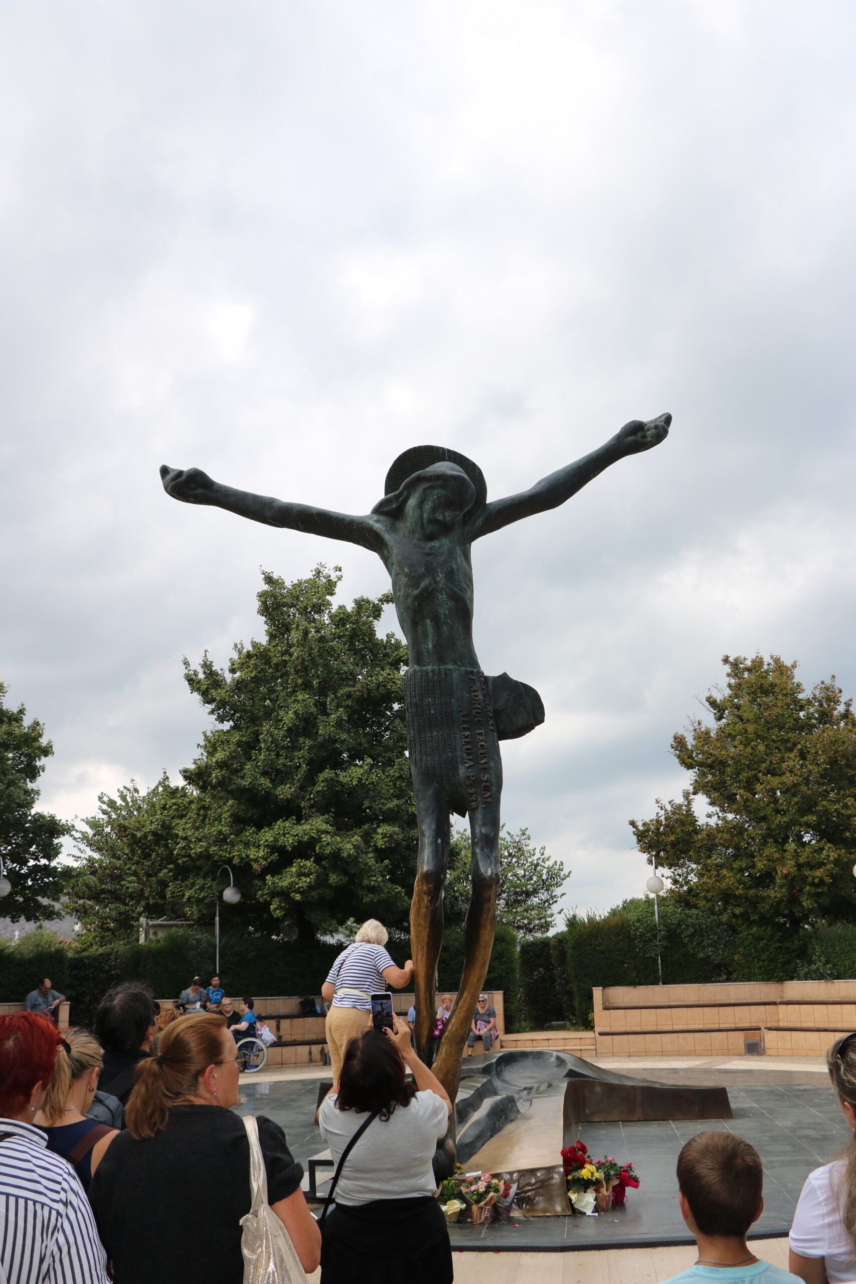 Naslednji dan po zajtrku se z avtobusom odpeljemo do vznožja Križevca. Na tem hribu stoji križ, v katerega so bile vgrajene relikvije izvirnega Jezusovega križa, in sicer že leta 1933. Na poti do vrha se je seveda treba prebijati po hercegovskem kamenju, a napor je na vrhu pozabljen. Mnogi ljudje se ustavijo ob križu in molijo. No, tišine ta sicer ni, saj je bila pred nami velika skupina hrvaških romarjev, ki je s seboj imela celo glasbenike. Na poti so seveda tudi postaje križevega pota (ki ga seveda zmolimo na besedilo koprskega stolnega župnika Primoža Krečiča, duhovnega vodje društva Mir, ki v Sloveniji združuje prijatelje Medžugorja). Upodobljene so na bronastih ploščah, ki jih je izdelal umetnik Carmelo Puzzolo, ki je pustil močan pečat v Medžugorju s kipi sv. Leopolda Mandića, sv. patra Pija, s postajami rožnega venca in pa kipom patra Slavka Barbarića, ki velja za nekakšnega »očeta« medžugorske duhovnosti in romarskega programa. V Medžugorje je najprej prišel že v začetku prikazovanj, krajši čas je bil kaplan v tej župniji, nato pa od leta 1990 dalje stalno. Bil je neverjeten talent, saj mu je uspelo poleg mnogih knjig, ki jih je napisal, ustvariti ustanove, kot so Materina vas, skupnost Usmiljenega Očeta, pa uvajati seminarje za duhovnike, za zakonske pare, pa seminarje posta … Umrl je leta 2000 na Križevcu, imel je komaj nekaj čez 50 let, njegovo telo čaka vstajenja na pokopališču blizu medžugorske cerkve. Tudi ta kraj smo si ogledali po končanem križevem potu, prav tako tudi kip vstalega Jezusa, ki ga je izdelal slovenski kipar Andrej Ajdič. Iz vznožja tega bronastega kipa iz nepojasnjenega vzroka tečejo kapljice, nekakšne solze.