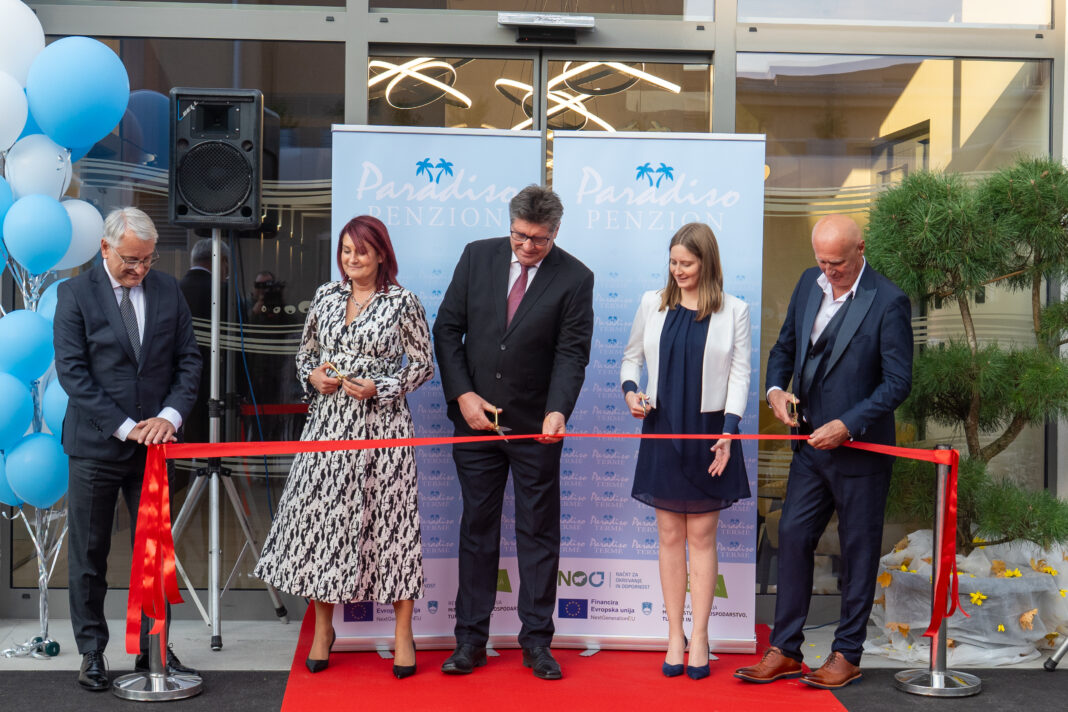V termalnem kraju Dobova so slovesno odprli novi Penzion Paradiso, butični turistični objekt, ki obiskovalcem ponuja vrhunsko udobje v objemu narave in termalnih doživetij. Otvoritev so simbolično obeležili minister za gospodarstvo, turizem in šport Matjaž Han, župan občine Brežice Ivan Molan ter direktor Term Paradiso Marjan Cvetkovič. Uradni del prireditve je povezovala Klara Eva Kukovičič, za glasbeno popestritev so poskrbeli učenci Glasbene šole Brežice, objekt pa je blagoslovil brežiški župnik Ivan Šumljak. Udeleženci so si ogledali tudi akrobatski prelet z letalom Extra 300, ki ga je izvedel akrobatski pilot Jure Tomše, prireditev pa sta s svojima nastopoma dodatno obogatila priznani komik Tin Vodopivec in glasbeni duet Cik Cak.