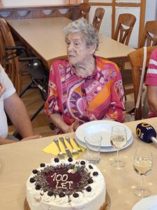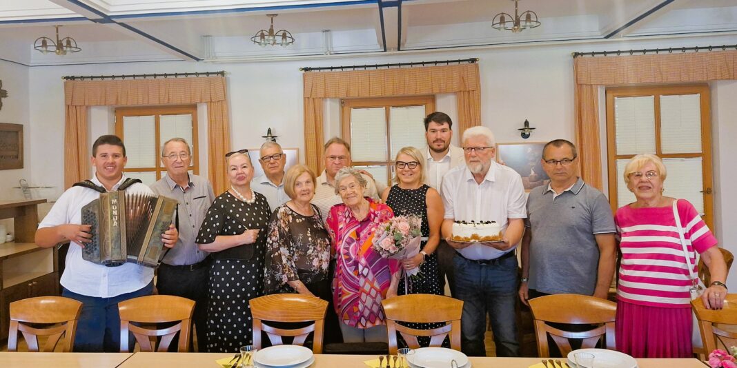 Obiska tako številne skupine članov in članic je bila navdušena. Njej na čas smo nazdravili ter rojstnodnevno zapeli, pa še kakšno pristno slovensko. Tako kot se šika.